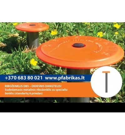 1. D85 landmark plastic top diameter is 85 mm. There is a text on the top part of the landmark: "RIBOŽENKLIS" ( LANDMARKVLANDMARK) "NAIKINIMAS UŽTRAUKIA ATSAKOMYBĘ" (DESTROYING BRINGS RESPONSIBILITY).