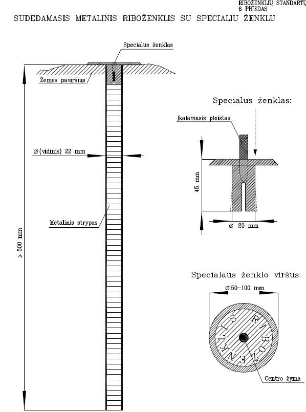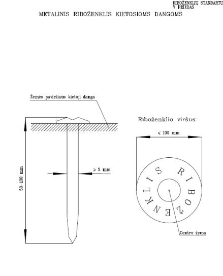 7.2. ženklinimo metu šis riboženklis vertikaliai visu aukščiu įtvirtinamas iki žemės paviršiaus;